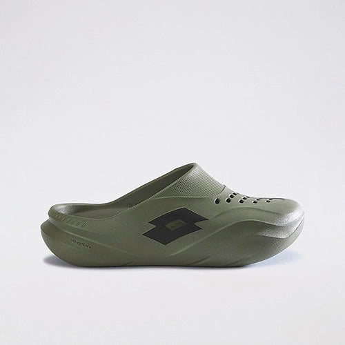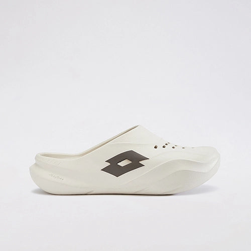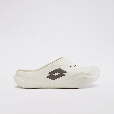 A pair of beige clogs