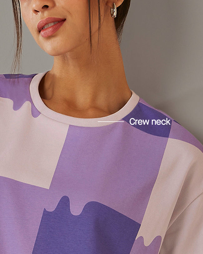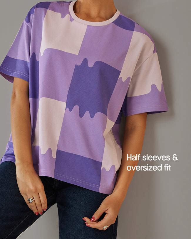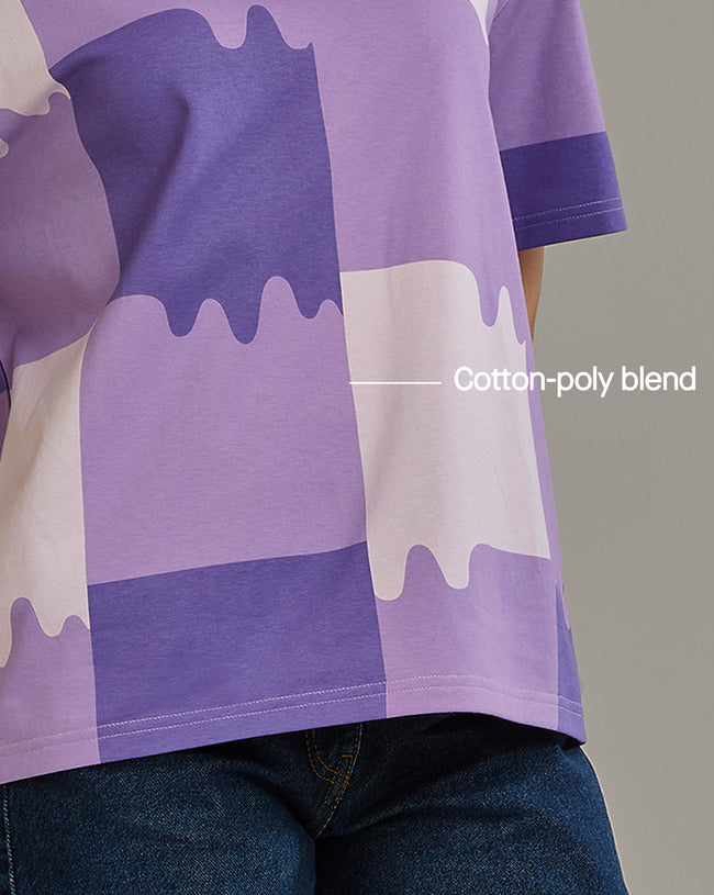 Oversized Melt Gingham Tee with minimal drip detailing. Liquid Fire purple checks that move like molten liquid. Made for those who stand out without trying.